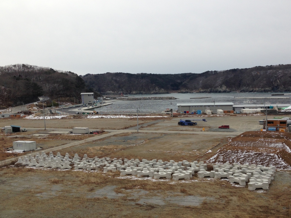 8日の午前中、田老地区を訪れ、被災した町の様子を、防波堤の上から見学したり、