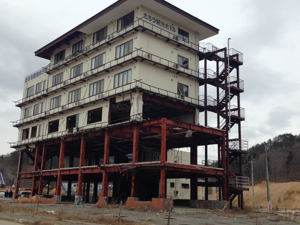 たろう観光ホテルという、下半分を津波で流されたホテルの上から、